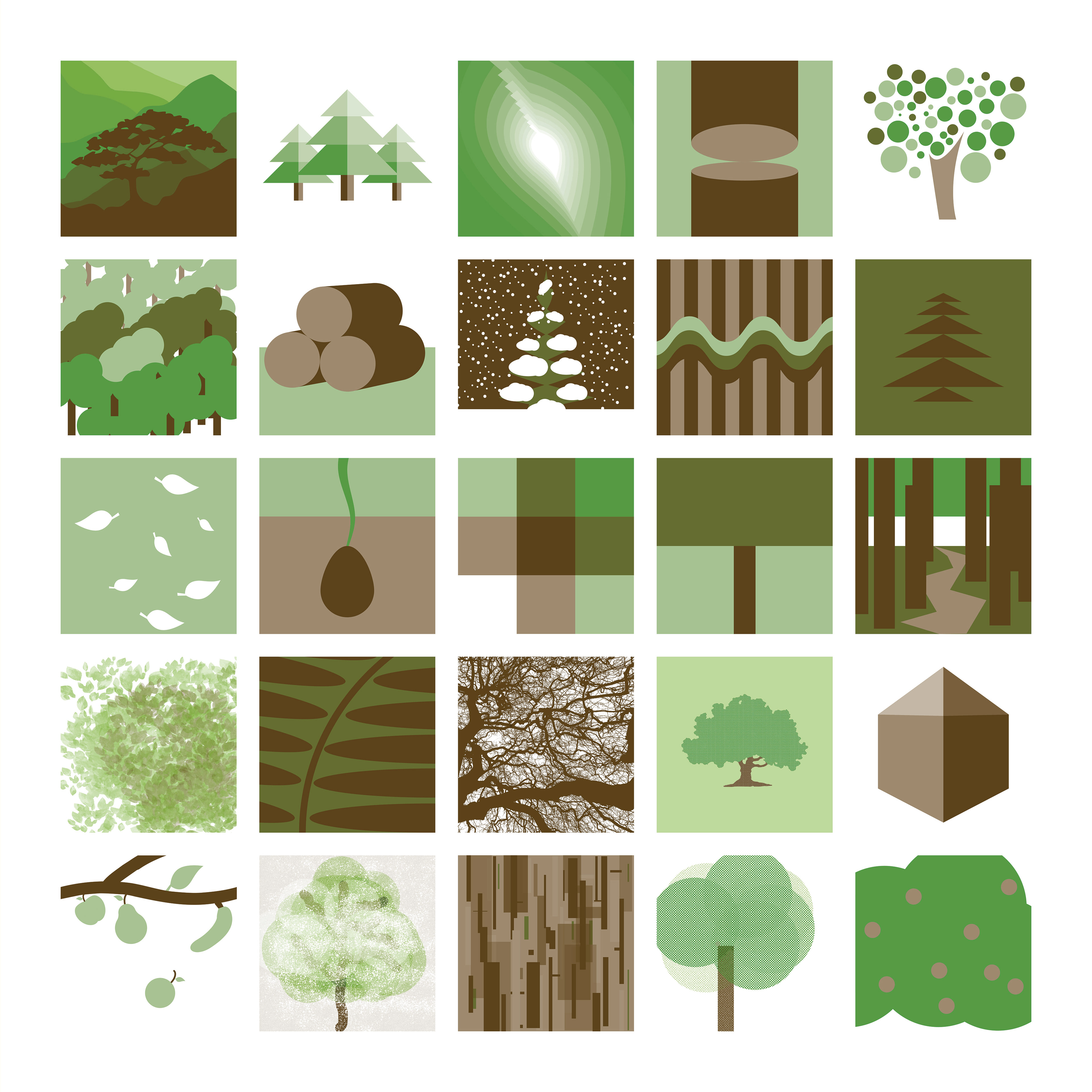 This project involved designing a tree 100 times, limited to a 3-color palette