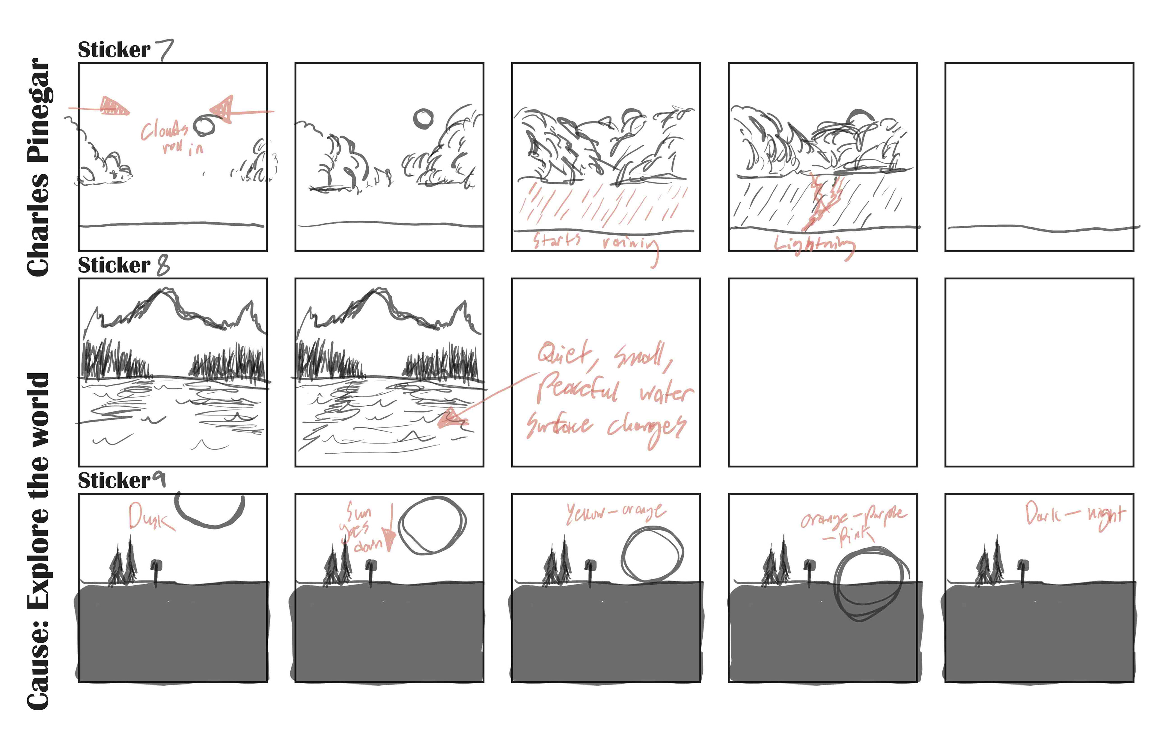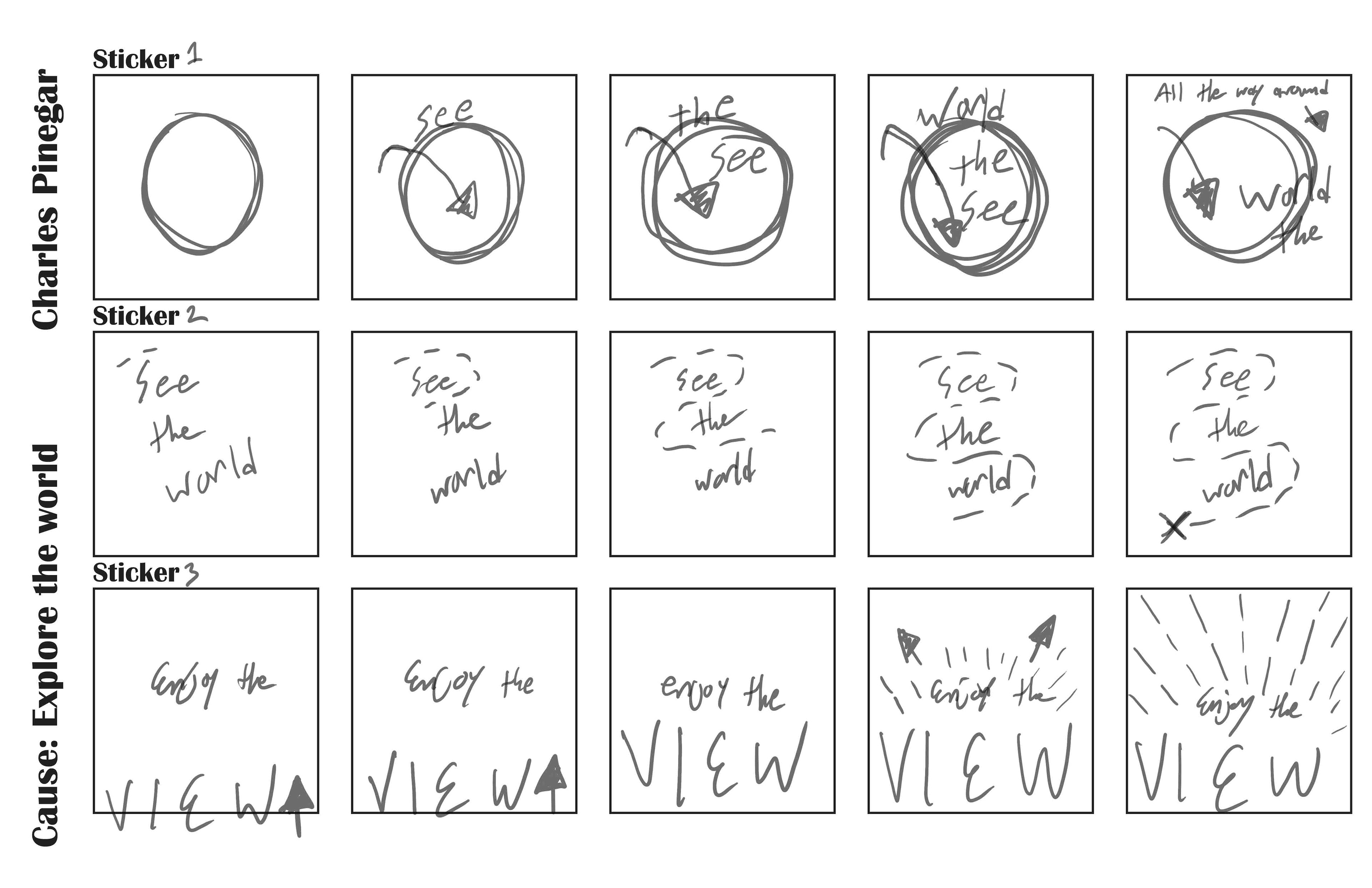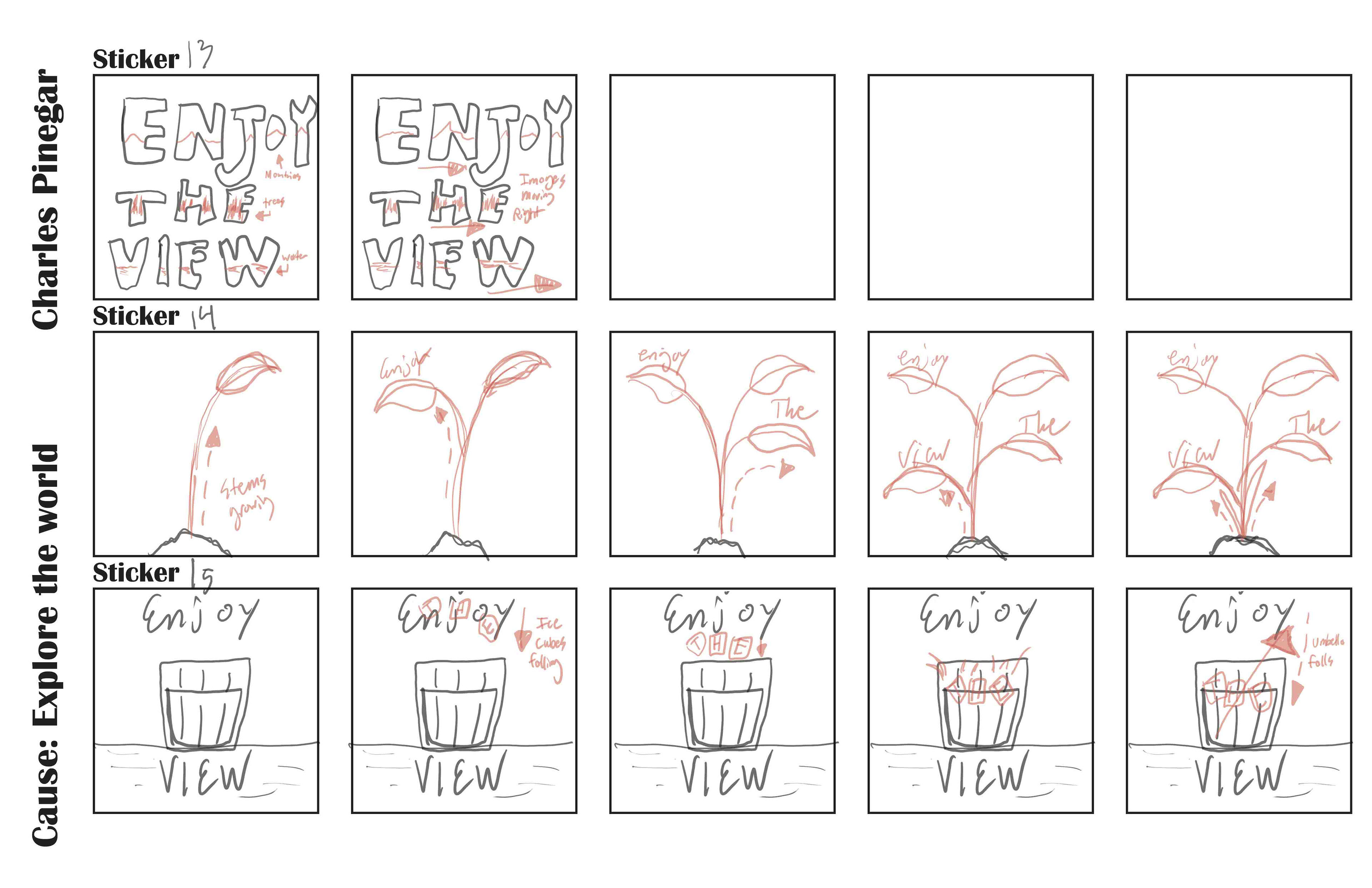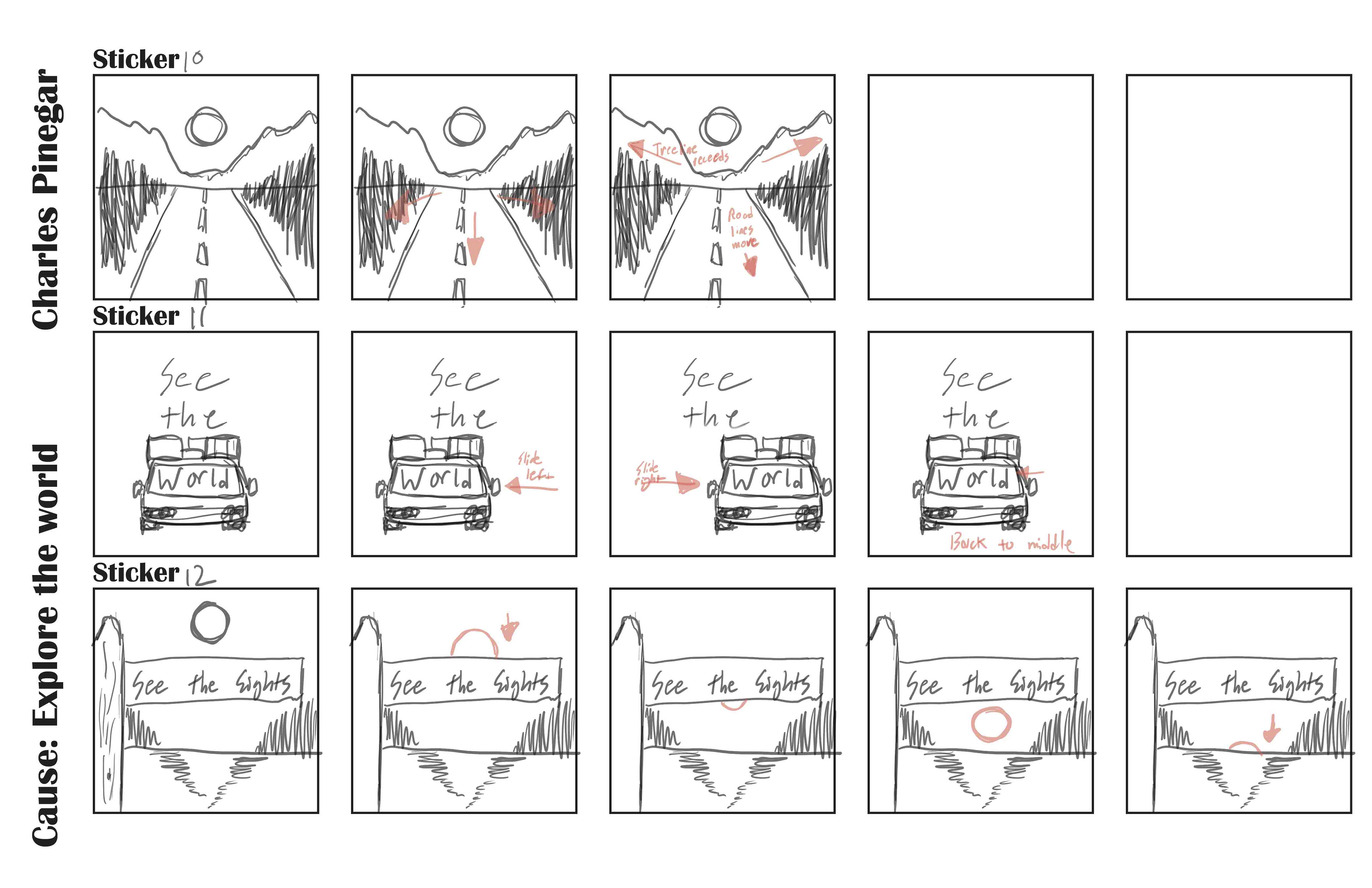 This project involved creating a set of frame animation GIFs/Stickers, all in the same system, and with a central theme. The theme that I chose was exploring the world, and appreciating the sites.