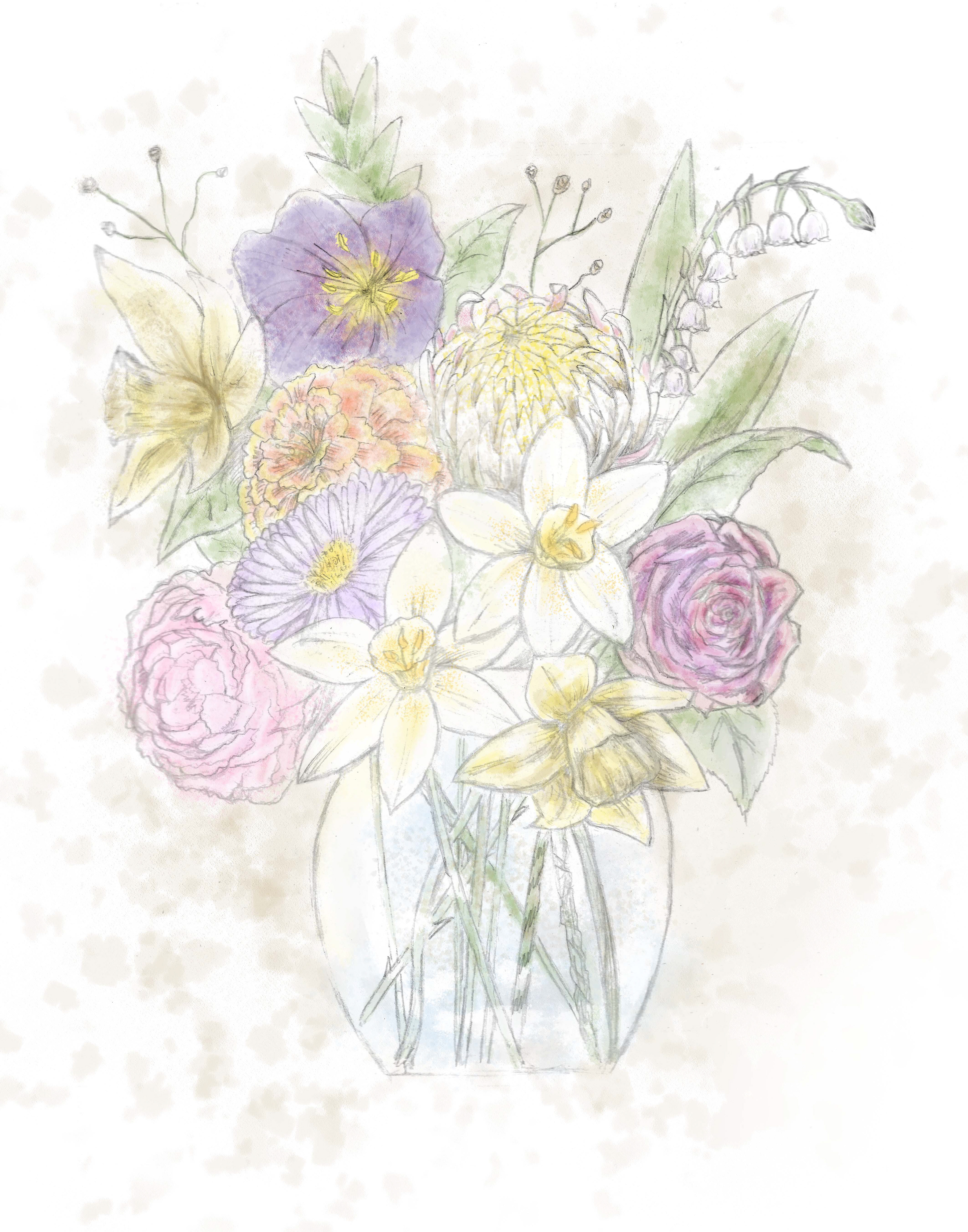 This illustration is a collection of my family's birth month flowers, and was drawn traditionally and colored digitally.